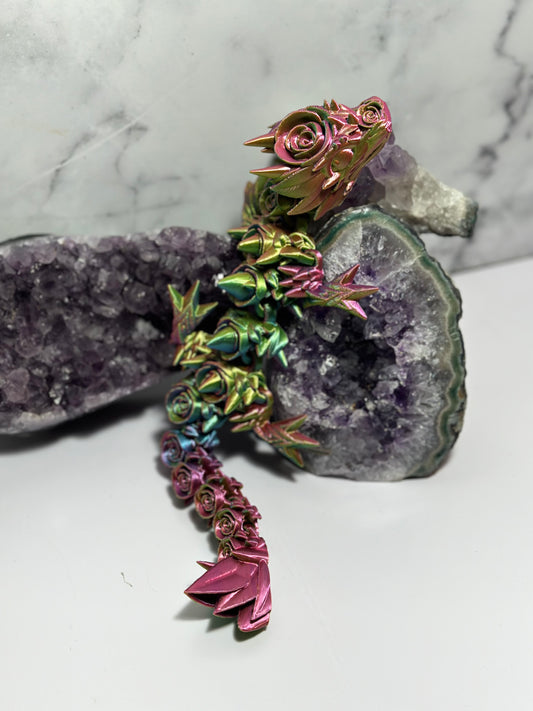 Rose Dragon Baby Articulated 3D Print (Rainbow) 11 Inch