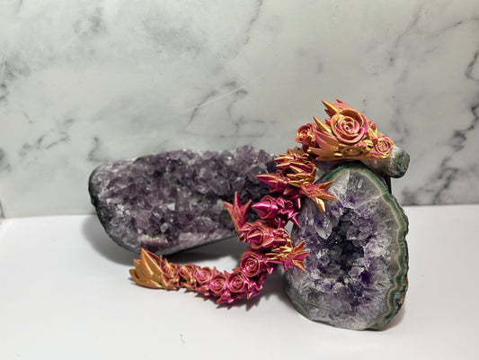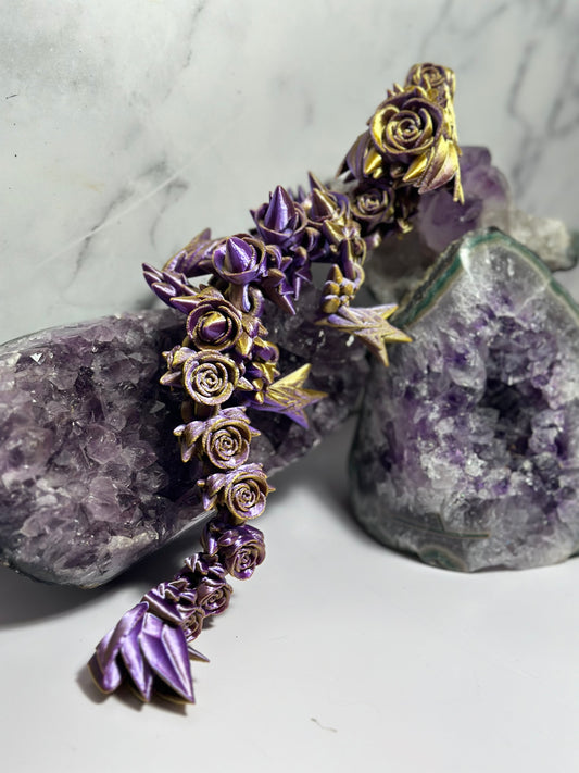 Rose Dragon Baby Articulated 3D Print (Purple & Gold) 11 Inch