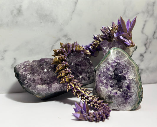 Crystal Dragon Articulated 3D Print (Purple & Gold) 18 Inch