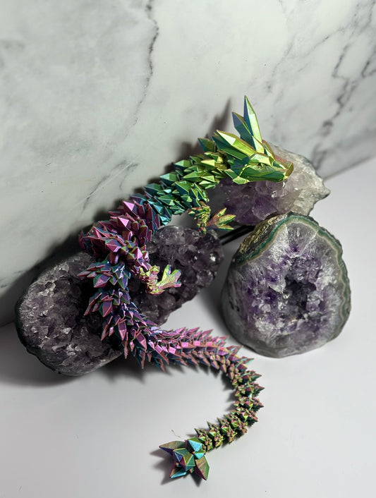 Crystal Dragon Articulated 3D Print (Rainbow) 18 Inch